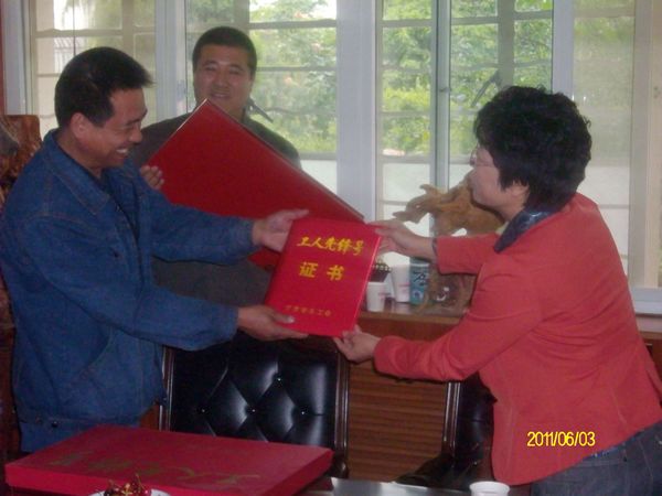 2011年6月3日,天水市工會領導劉榮芳、陸幼晨一行來到天華鑄機,為被評為甘肅省“工人先鋒號”榮譽稱號的天華鑄機電器車間授榮譽證書和獎牌。